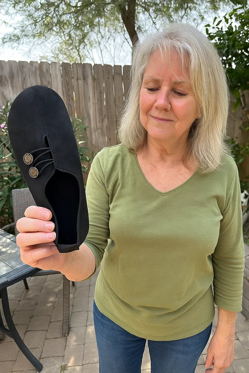 Designed with a roomy toe box and flexible fit to ease bunions, swelling, and wide feet — so every step feels natural.